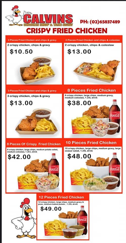 It’s time to go Calvins! Are you ready to have the best Fried chicken, Calvins Chicken shop is located In the Growers market Complex on Gordon Street Port Macquarie. The best Chicken right here in front on you with their delicious and juicy pieces that are sure not only sure to fill up your stomach but also leave you satisfied.